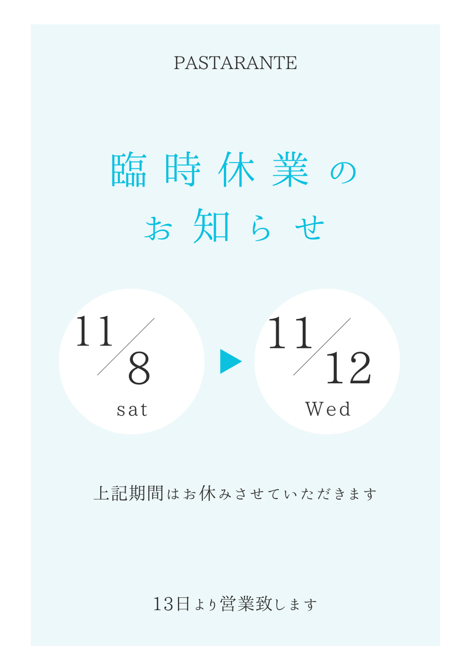 PASTARANTE パスタランテ のお知らせ一覧に戻る